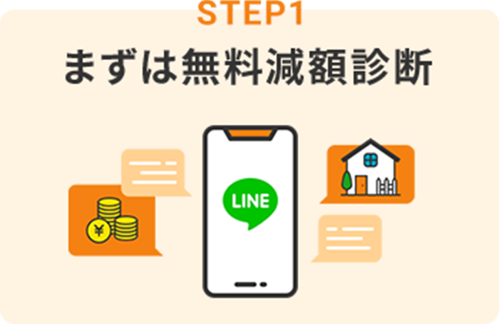 まずはLINEから無料減額診断をお試しください。お客様の今のお借入額や借入の種類などにお答えいただくと、その場で減額可能額の目安が出ます。