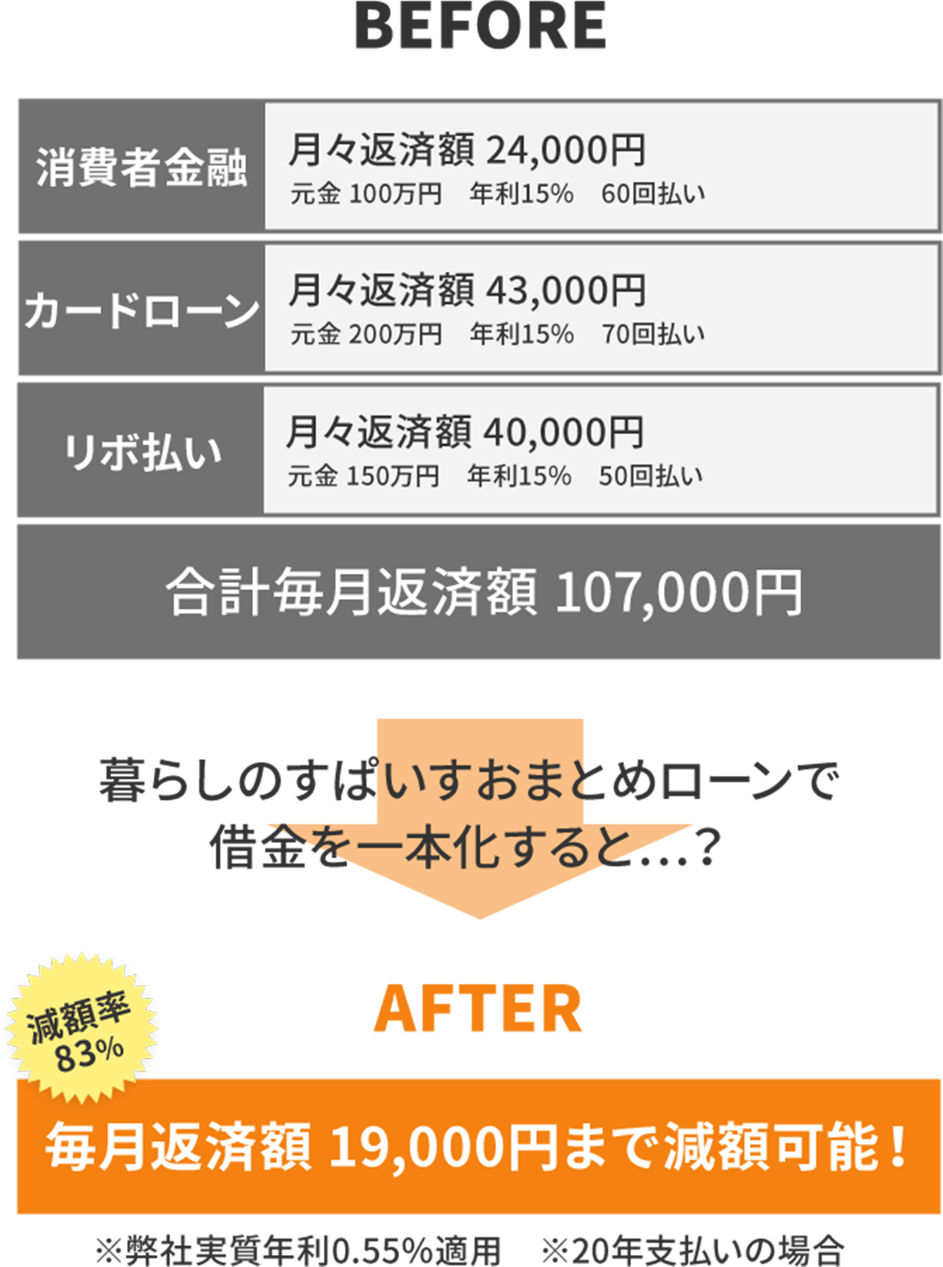 でも実はその借金、おまとめして利息を下げるとこんなに楽になるんです。
