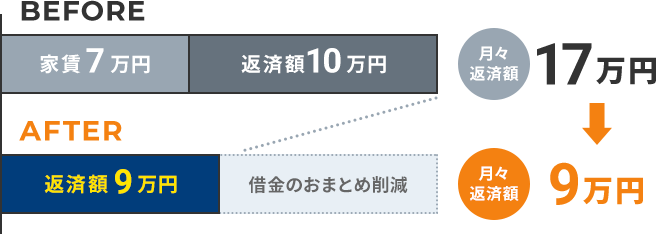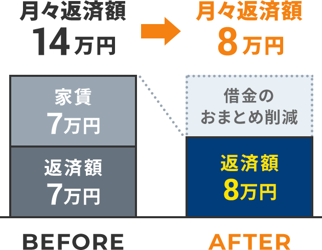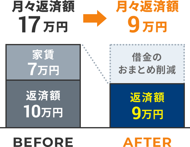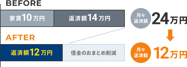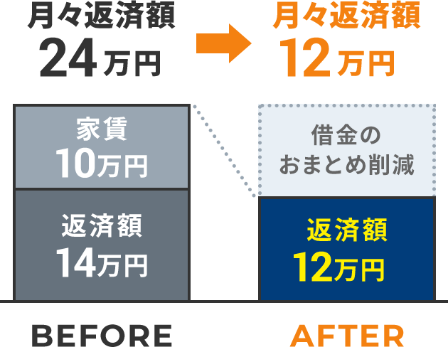 ブラックリストや官報に名前がのらず、信用情報はキレイなまま月々の支払いを大幅に減額できます。